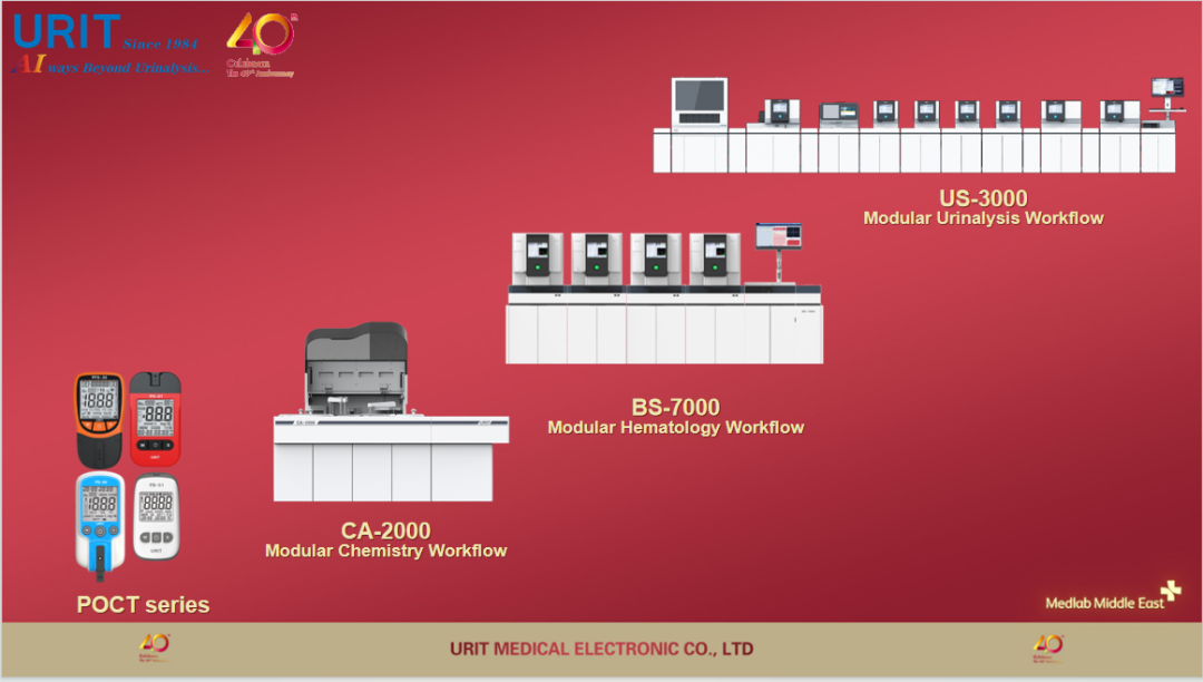 On the second day of the exhibition, the URIT International Marketing team will host a product launch and customer appreciation dinner at the Swiss?tel Al Murooj Dubai. They will introduce products like the US-3000 series AI modular urinalysis workflow, BS-7000 series modular hematology workflow, CA-2000 automatic chemistry analyzer, and POCT devices, and hold an awards ceremony for nearly 100 outstanding global distributors in celebration of the company’s 40th anniversary.